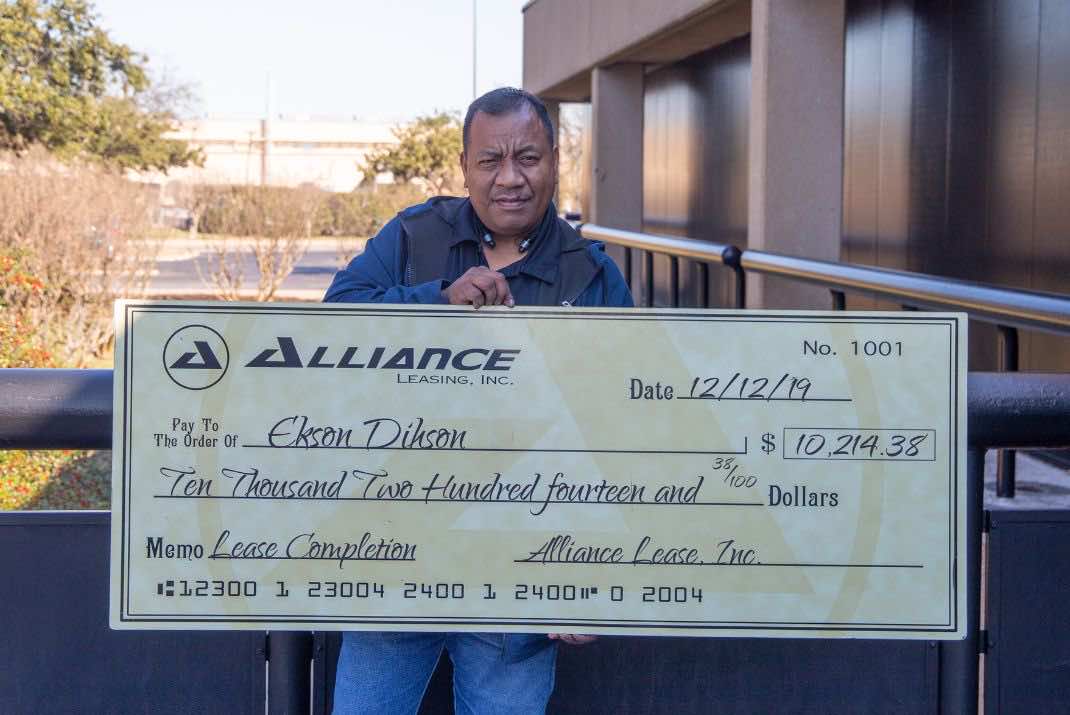 Originally from Guam, Ekson Dihson was accustomed to a much smaller environment than the one he now claims as his driving territory. With a hunger for success, Ekson is making his dreams possible by fueling forward. He recently received an $11,892.96 lease completion bonus check and is ready for his next adventure!