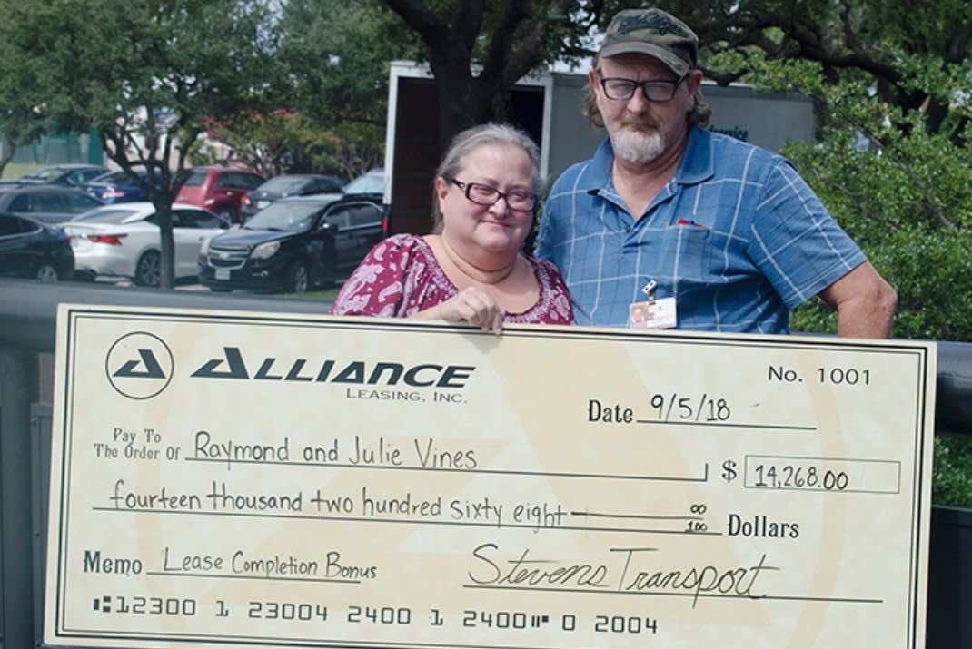 Raymond and Julie Vines were looking to leave their small business and start a new career. Raymond decided to enroll in the Lone Star College Transportation Institute to get his CDL and start a new career in truck driving. It was not long after he hit the road with Stevens that his wife, Julie followed his lead. Four years and three lease completions later, the couple gets excited with each new lease.