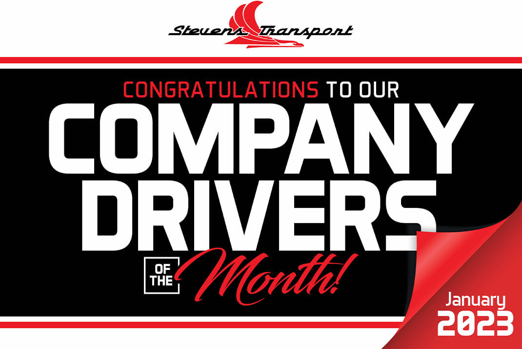 Our outstanding service as a premier logistics and transportation solutions provider is backed by the dedication and hard work of our entire team, from back-office support staff to driving professionals. And the best of the best drive for Stevens Transport. The executive team of Stevens Transport is proud to announce and honor the driver award winners for the month of January 2023.