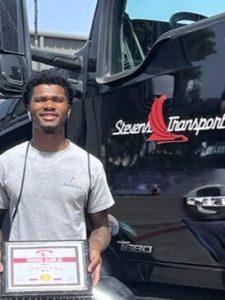 Congratulations to Michael Clark Jr., our Grad Driver of the Month Runner Up! Michael received his CDL from Tampa Truck Driving School and came to Stevens in March of 2024. Michael’s dedication to learning and absorbing knowledge from veteran drivers has helped him while out on the road. He is appreciative of the opportunity and the new places he has been able to see. In June, Michael covered 10K miles! He is excited to start his career and hopes new drivers will also jump right in, stay focused, and keep learning. When he is off the road, Michael enjoys spending time with his family and loved ones and making memories.
